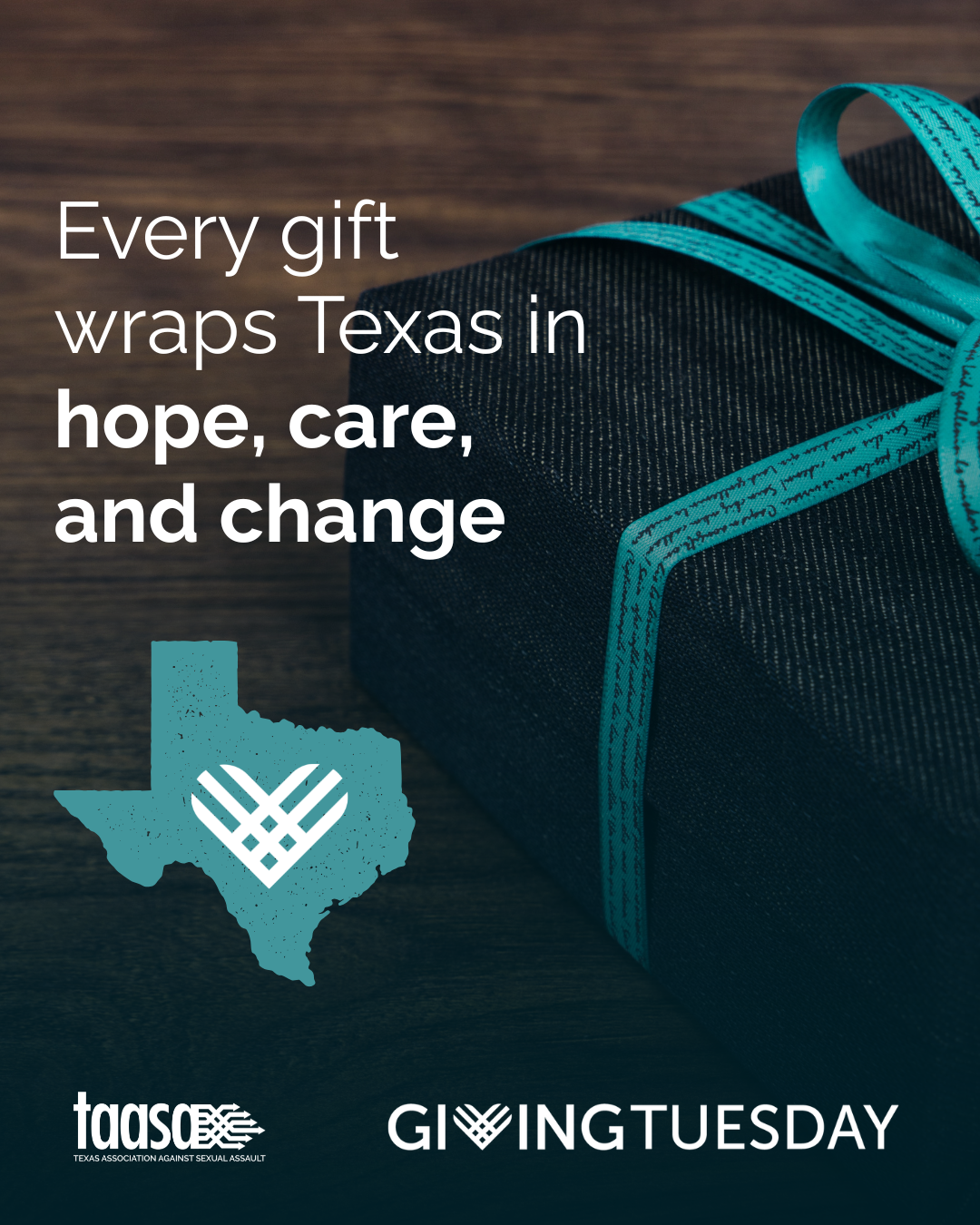 1) ‘Wrap Texas in Hope’ by donating towards our efforts and work this Giving Tuesday. Every day, advocates across our state stand beside survivors: offering safety, support, and a path forward. Behind them stands TAASA, providing resources, tools, and advocacy for funding to further the efforts of Crisis Centers and advocates in Texas. Your gift fuels training, advocacy, and policy change, keeping Texas warm with compassion and committed to progress.